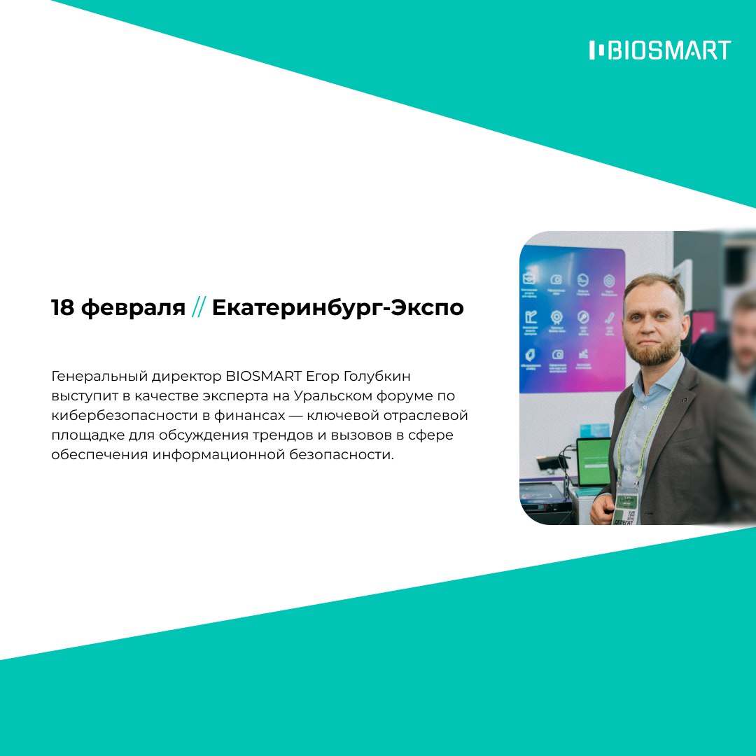 18 февраля генеральный директор BIOSMART Егор Голубкин выступит в качестве эксперта на Уральском форуме по кибербезопасности в финансах — ключевой отраслевой площадке для обсуждения трендов и вызовов в сфере обеспечения информационной безопасности.