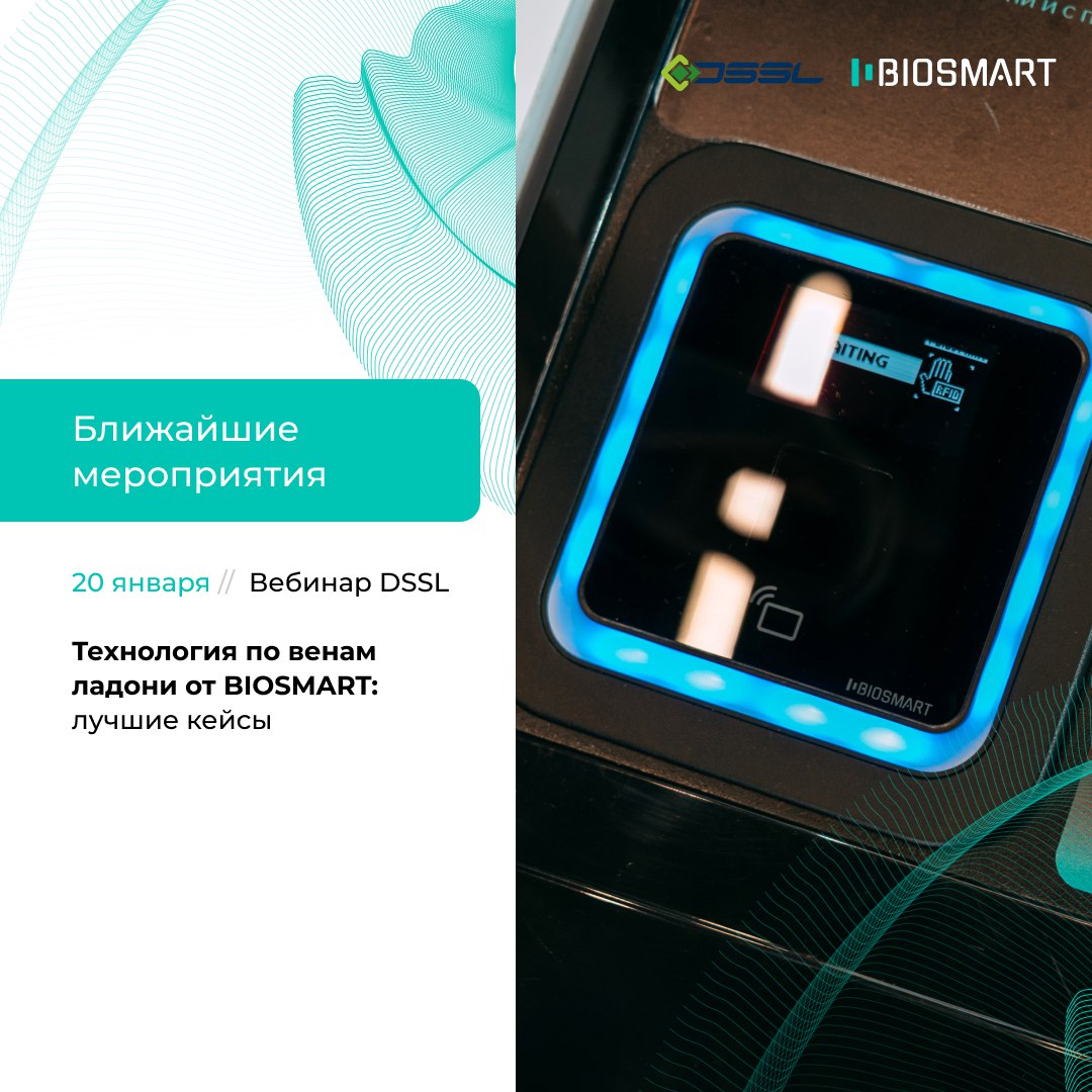 20 января совместно с компанией DSSL мы проводим первый в этом году вебинар. Темой встречи станет: «Технология по венам ладони от BIOSMART: лучшие кейсы».